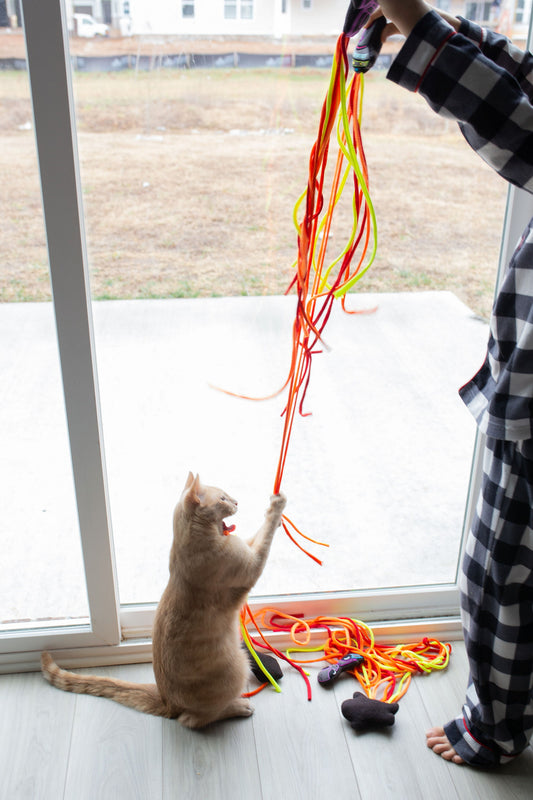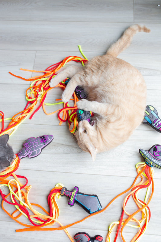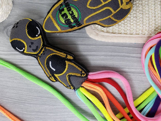 Every toy is sewn in our very own shop, stuffed to order with premium catnip, and hand-finished with springy, cotton jersey tails that measure up to 36 inches long! Your Kitty will love these super interactive and fun toys, prepare for some spaced-out cats!!! Each cat toy is made by me, Rachel from Cinci Made Embroidery (check us out for your human stuff!