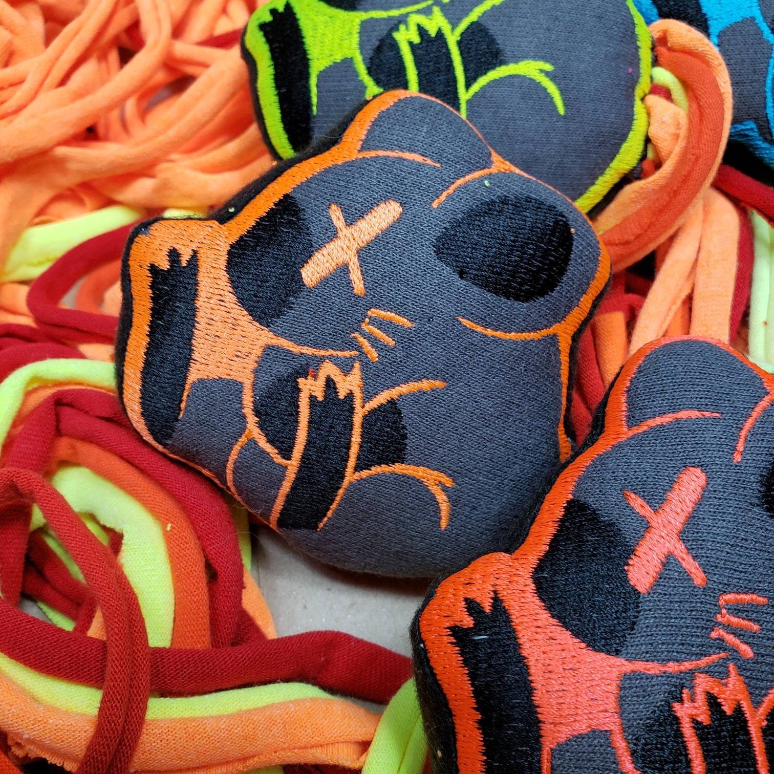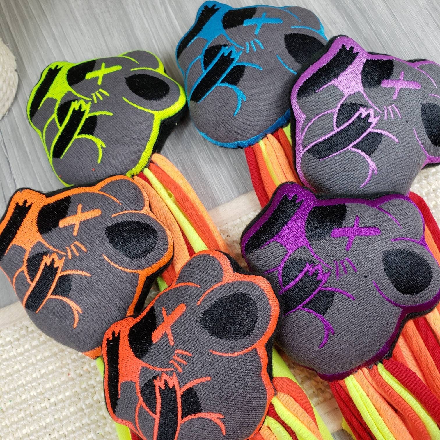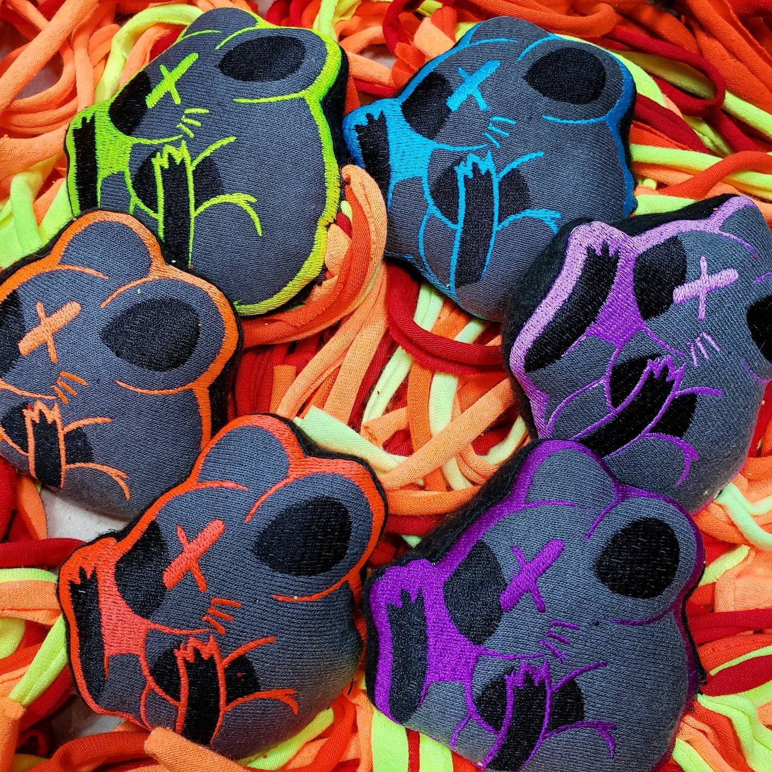 All 6 Neon Meowdered Mice Premium Catnip Toys! Sewn in shop, stuffed with premium catnip, and finished with springy, cotton jersey tails that measure up to 36 inches long! Your Kitty will love these super interactive and fun toys, prepare for some spaced out cats!!! Each cat toy is made by me, Cinci Made Embroidery (check us out for your human stuff!)