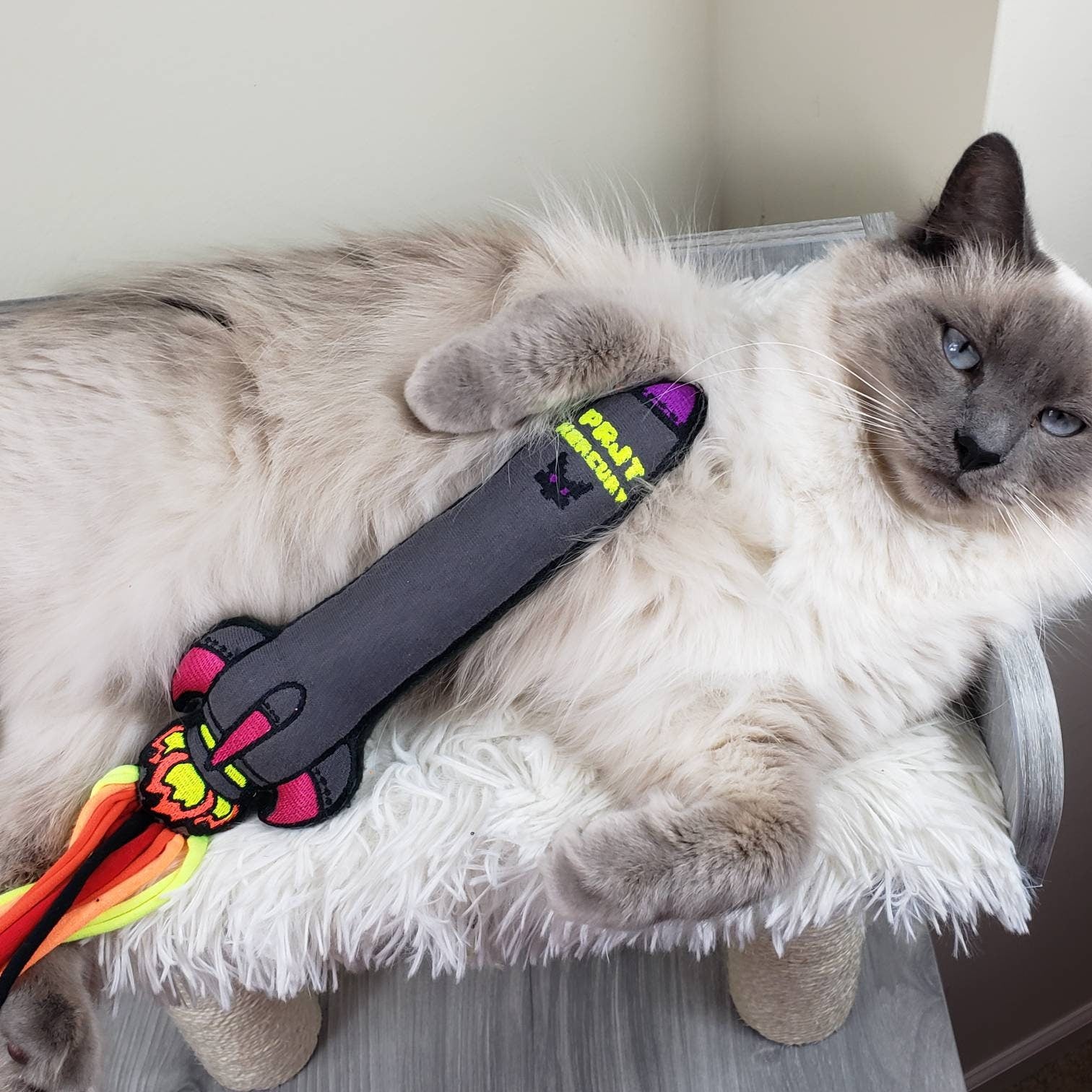 Every toy is sewn in our very own shop, stuffed to order with premium catnip, and hand-finished with springy, cotton jersey tails that measure up to 36 inches long! Your Kitty will love these super interactive and fun toys, prepare for some spaced out cats!!! Each cat toy is made by me, Rachel from Cinci Made Embroidery (check us out for your human stuff! www.etsy.com/shop/CinciMadeEmbroidery )